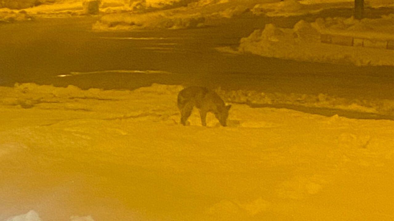 Erzincan’da gece saatlerinde aç kalan bir kurt şehir merkezine indi.