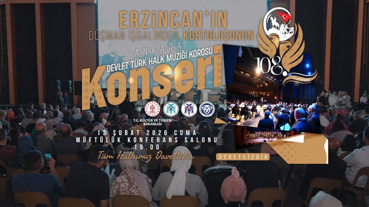 13 Şubat Erzincan’ın düşman işgalinden kurtuluşunun 108. yıl dönümü etkinlikleri kapsamında anlamlı bir konser programı düzenleniyor.