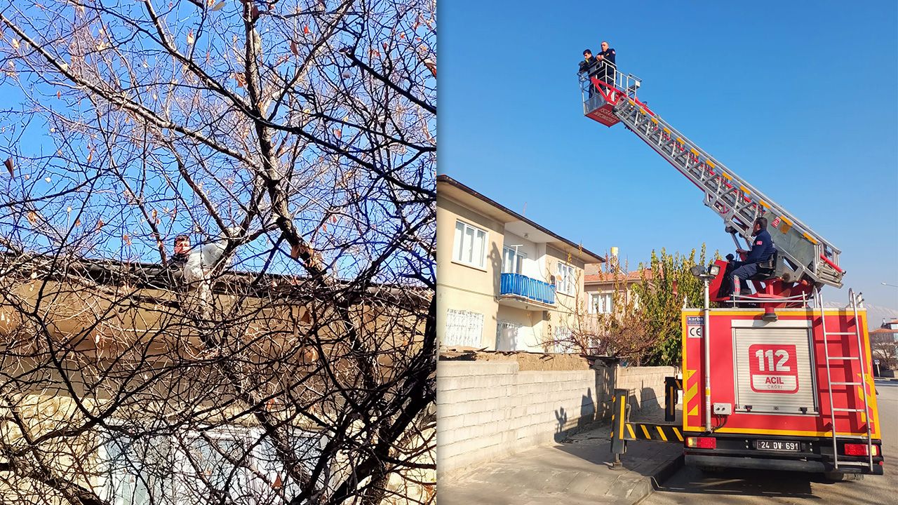 İhbar üzerine kısa sürede olay yerine gelen Erzincan İtfaiyesi ekipleri, iki katlı binanın çatısında sıkışıp kalan kediyi kurtarmak için çalışma başlattı. Ancak korkudan çatıdan inmekte tereddüt eden kedi, ekiplerin müdahalesi sırasında sürpriz bir çözüm yolunu tercih etti.