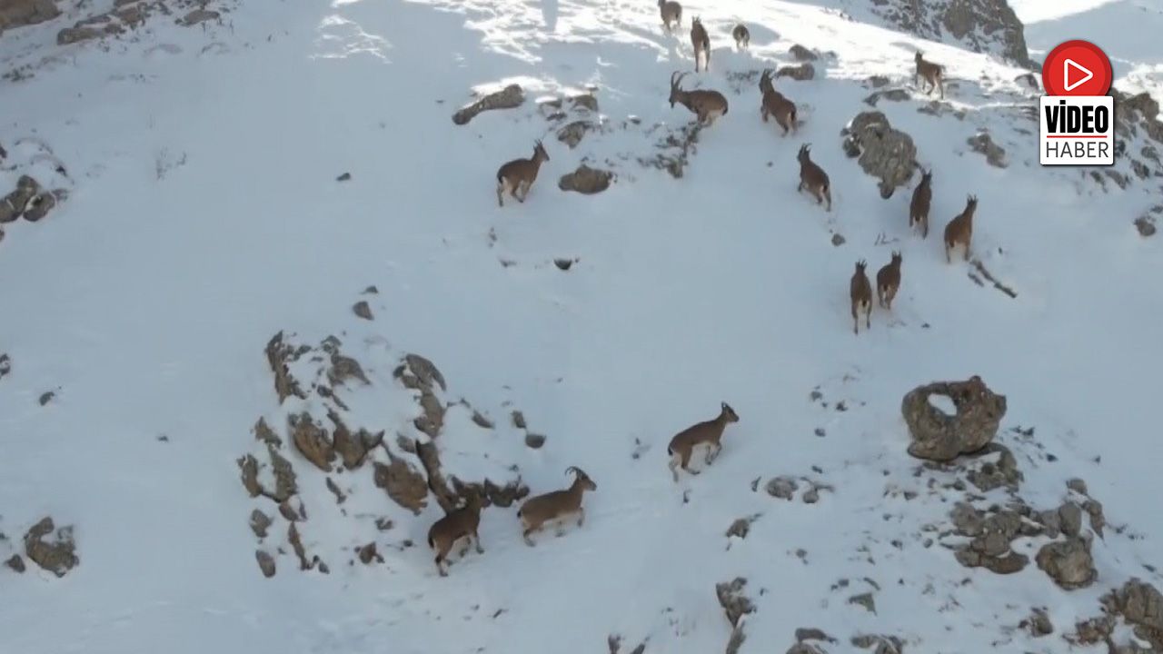 Yaban hayatının zengin olduğu Erzincan'da nesli tükenmekte olan ve koruma altında bulunan dağ keçileri karlı arazide yiyecek ararken drone ile kaydedildi. Yükseklerde yaşadığı için nadir görülen dağ keçileri doğaseverleri mest etti. Yakından görüntülenen sürü halindeki dağ keçileri belgesel niteliğinde görüntüler ortaya çıkardı. Karlı arazide kendi doğasında görüntülenen dağ keçileri doğaseverlerin beğenisine sunuldu.