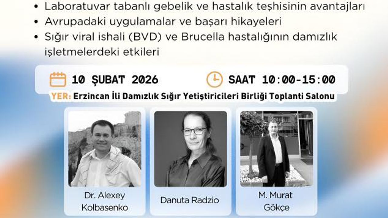 10 Şubat 2026 tarihinde, saat 10.00 ile 15.00 arasında yapılacak seminer, Erzincan İli Damızlık Sığır Yetiştiricileri Birliği Toplantı Salonu’nda gerçekleştirilecek. Program kapsamında erken gebelik teşhisinin ekonomik önemi, “yılda bir buzağı” hedefinin nasıl gerçekleştirilebileceği, laboratuvar tabanlı gebelik ve hastalık teşhisinin avantajları ile Avrupa’daki uygulamalar ve başarı örnekleri katılımcılarla paylaşılacak.