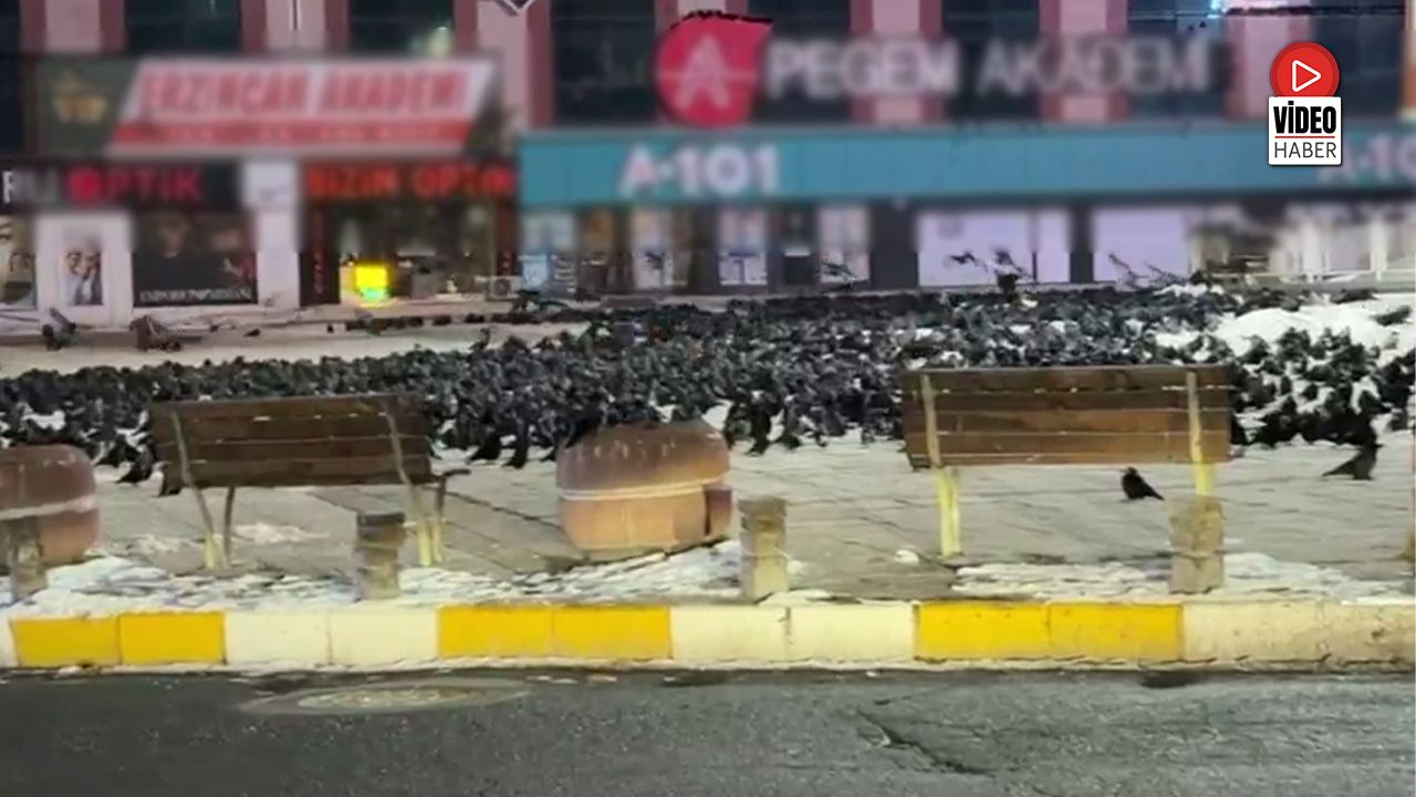 Erzincan Dörtyol’da sabahın erken saatlerinde binlerce karga ilginç görüntüler oluşturdu. Yeraltı çarşısı ve Kızılay meydanını dolduran kargalar sabahın ilk ışıklarıyla birlikte beslenmek üzere şehir çöplüğüne doğru uçtular.