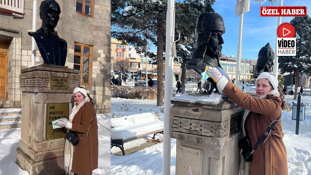 Dondurucu soğuk havaya aldırmayan Muğlalı öğrenci Başak Çetin, büstleri birer birer temizledi. Büstlerin kirlenmiş halini görünce dayanamadığını ve başta Atatürk büstü olmak üzere Türk Büyüklerinin büstlerini temizlediğini belirten Çetin; “Bizler Türk gençleri olarak Bağımsızlığımızı ve Özgürlüğümüzü Atatürk’e, Cumhuriyete ve Türk büyüklerine borçluyuz, bu nedenle böyle bir girişimde bulundum” dedi.