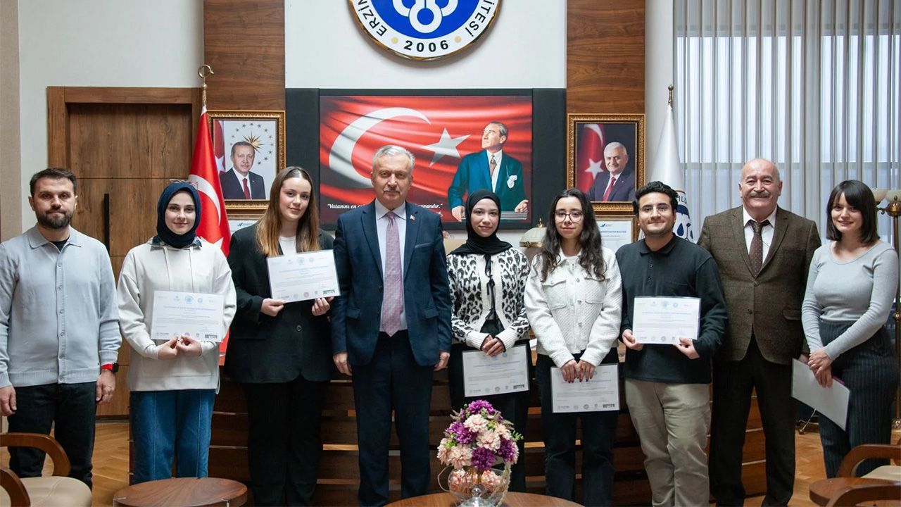 Araştırma programını başarıyla tamamlayan öğrenciler için bir tören düzenlendi. Törene Erzincan Binali Yıldırım Üniversitesi Rektörü Prof. Dr. Akın Levent, Eğitim Fakültesi Dekanı Prof. Dr. Fethi Kayalar, Dekan Yardımcısı Prof. Dr. Oğuzhan Yılmaz, Dr. Öğr. Üyesi Bahar Aksu ve proje ekibi katıldı. Öğrencilere uluslararası katılım sertifikaları takdim edilerek başarılarından dolayı tebrik edildi.