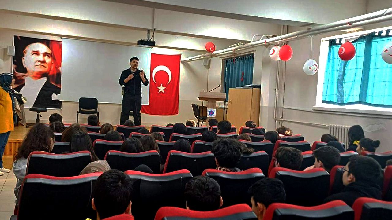 Bu çerçevede Erzincan Anadolu Lisesinde öğrenci ve öğretmenlere yönelik düzenlenen programda; teknoloji bağımlılığı, güvenli internet kullanımı, siber suçlar ve siber zorbalık konularında eğitim verildi. Toplam 140 katılımcının yer aldığı etkinlikte, bilgilendirici broşürler de dağıtıldı.