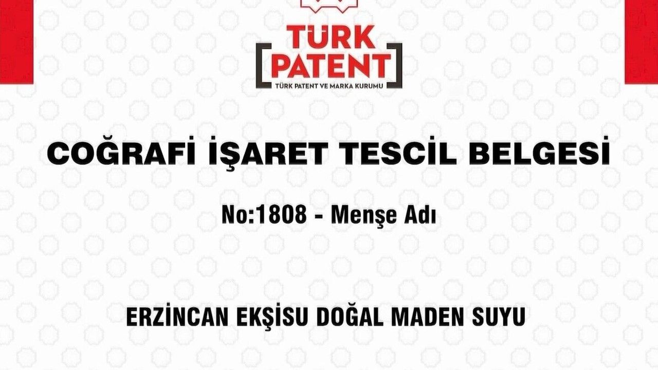 Erzincan Belediyesi tarafından yapılan başvuru sonucunda, Türk Patent ve Marka Kurumu, 26 Aralık 2023 tarihli (No: C2023/000353) başvuruyu kabul ederek 'Erzincan Ekşisu Doğal Maden Suyu'nu menşe adıyla tescilledi.