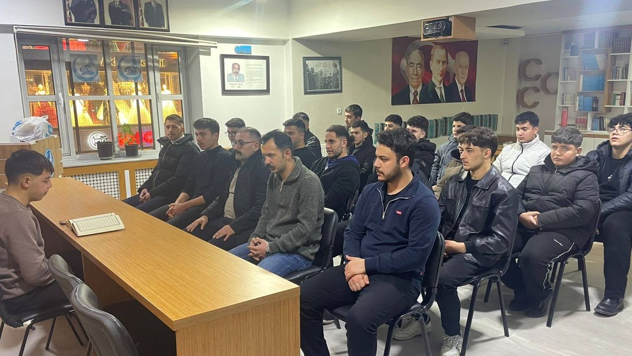 Ülkü Ocakları hizmet binasında Kur’an-ı Kerim tilaveti gerçekleştirildi ve deprem şehitleri ve tüm şehitler için dualar edildi.