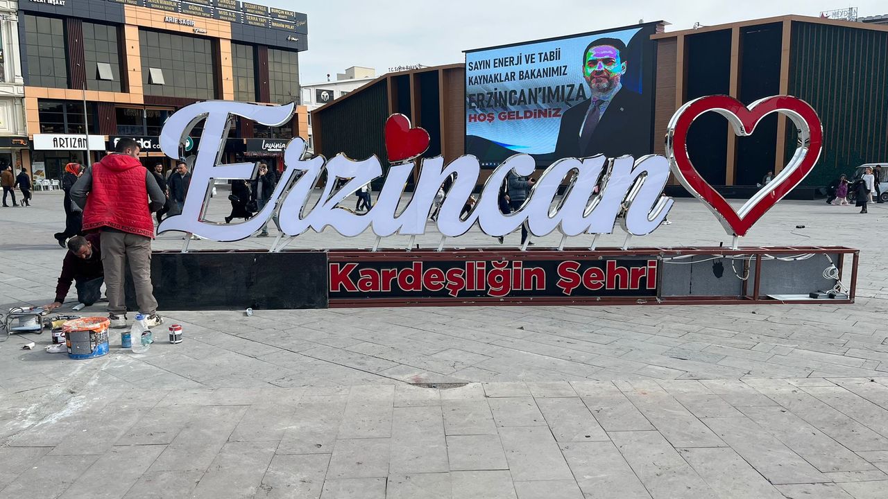 Kente gelen ziyaretçiler için adeta bir karşılama noktası işlevi gören ve hatıra fotoğraflarının vazgeçilmez adreslerinden biri haline gelen tabela, son dönemde maruz kaldığı dış etkenler nedeniyle zarar görmüş ve yenilenmek üzere yerinden kaldırılmıştı. Erzincan’ın simgelerinden biri olarak kabul edilen yazının yeniden tasarlanması için başlatılan çalışmalar kısa sürede tamamlandı.