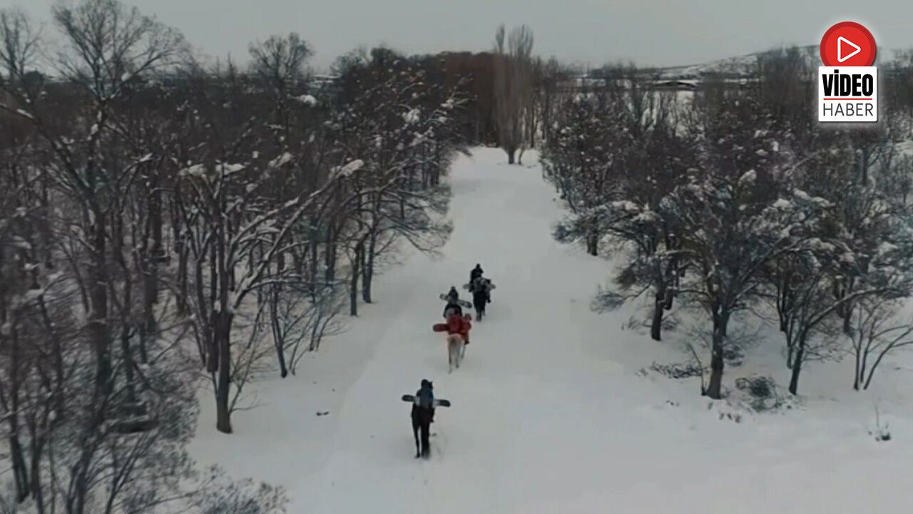 Erzincan'da bir grup doğa ve snowboard tutkunu, karlı ovada gerçekleştirdikleri sıra dışı etkinlikle dikkat çekti. Ergan Boards adlı grup, snowboardlarını sırtlarına alarak atlarla Erzincan'ın beyaza bürünen ovalarında ve ağaçlık alanlarında safari yaptı.