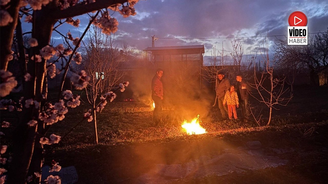 Baharın gelişiyle birlikte kayısı başta olmak üzere elma, kiraz ve diğer meyve ağaçlarının çiçek açtığı kentte, ani sıcaklık düşüşleri üreticileri endişelendiriyor. Gece boyunca bahçelerinde nöbet tutan çiftçiler, farklı noktalarda kontrollü ateşler yakarak oluşan ısı ve duman sayesinde ağaçların zarar görmesini önlemeye çalışıyor.
