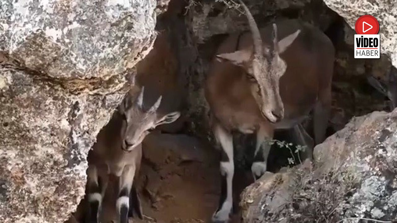 Yaban hayatı açısından zengin bir potansiyele sahip olan Erzincan'da dağlık alanda kaydedilen görüntülerde, 3 dağ keçisinin sarp kayalıklar arasındaki küçük bir kovukta bir süre çevreyi izlediği görüldü.