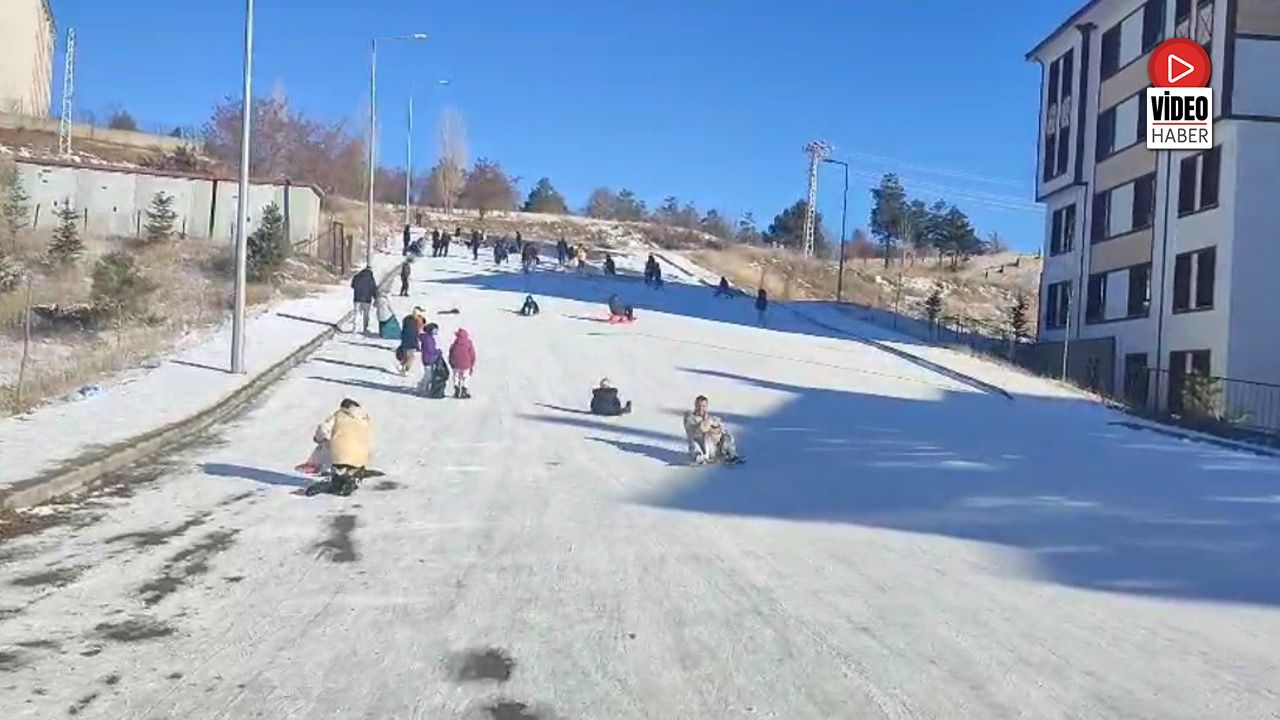 Erzincan'ın Tercan ilçesinde etkili olan soğuk hava, çocukların eğlencesine engel olmadı. Hava sıcaklığının gündüz saatlerinde eksi 10 dereceye kadar düştüğü ilçede, kar yağışının ardından oluşan beyaz örtü çocuklar için doğal bir eğlence alanına dönüştü. İlçede yokuş aşağı uzanan alanlarda toplanan çocuklar, kızakla kayarak keyifli anlar yaşadı.