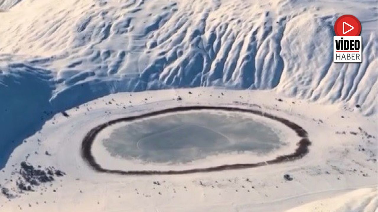 İliç Belediye Başkanı Mehmet Elçi'nin paylaştığı görüntüler ilgi görürken, yaklaşık 350 metre çapındaki ve jips erimesiyle oluşan göl, kış mevsiminde farklı bir görünüme büründü.