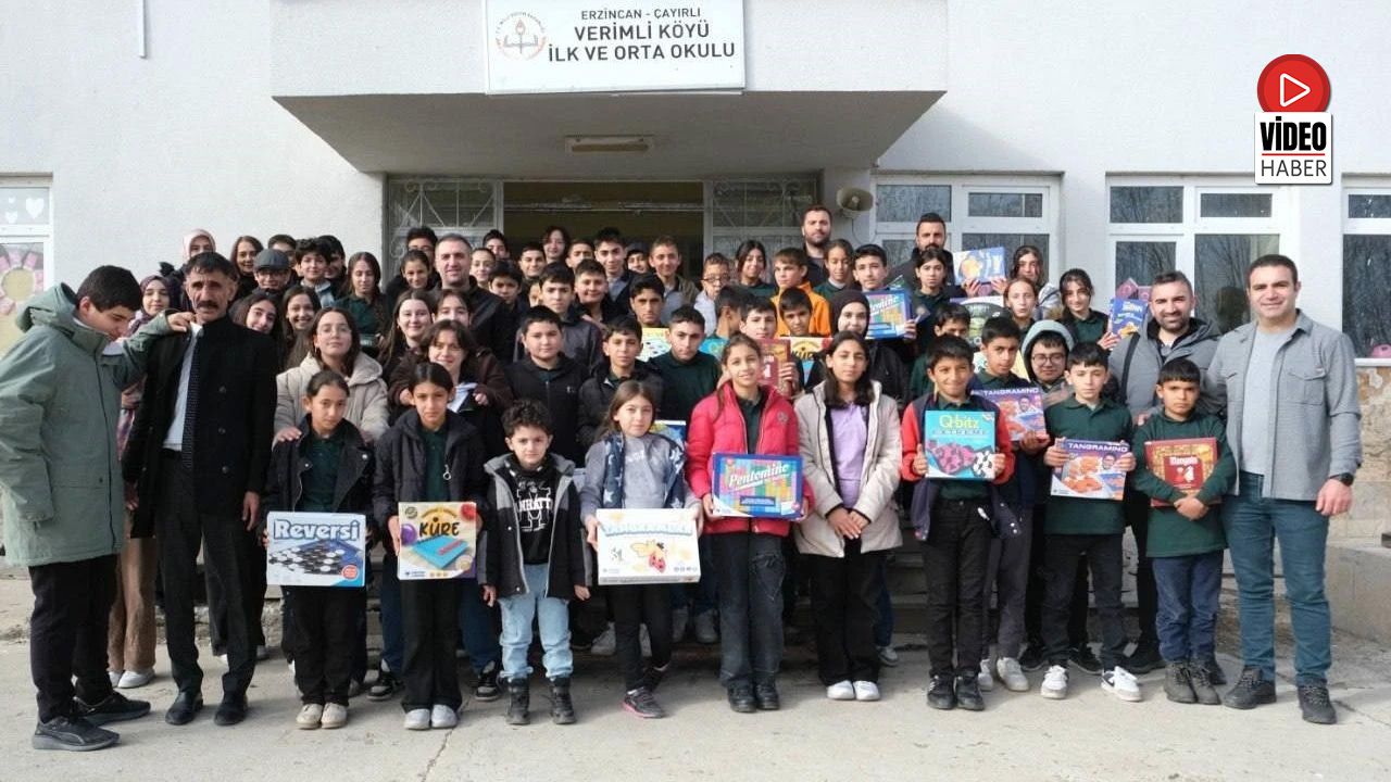 Erzincan Şehit Jandarma Er Fatih Çaybaşı Ortaokulu öğrencileri, "Oyun Arkadaşım Sensin" projesi kapsamında Çayırlı ilçesine bağlı Verimli köyü İlk ve Ortaokulu’nu ziyaret ederek zeka oyunları ile kışlık mont ve bot hediyeleri ulaştırdı.