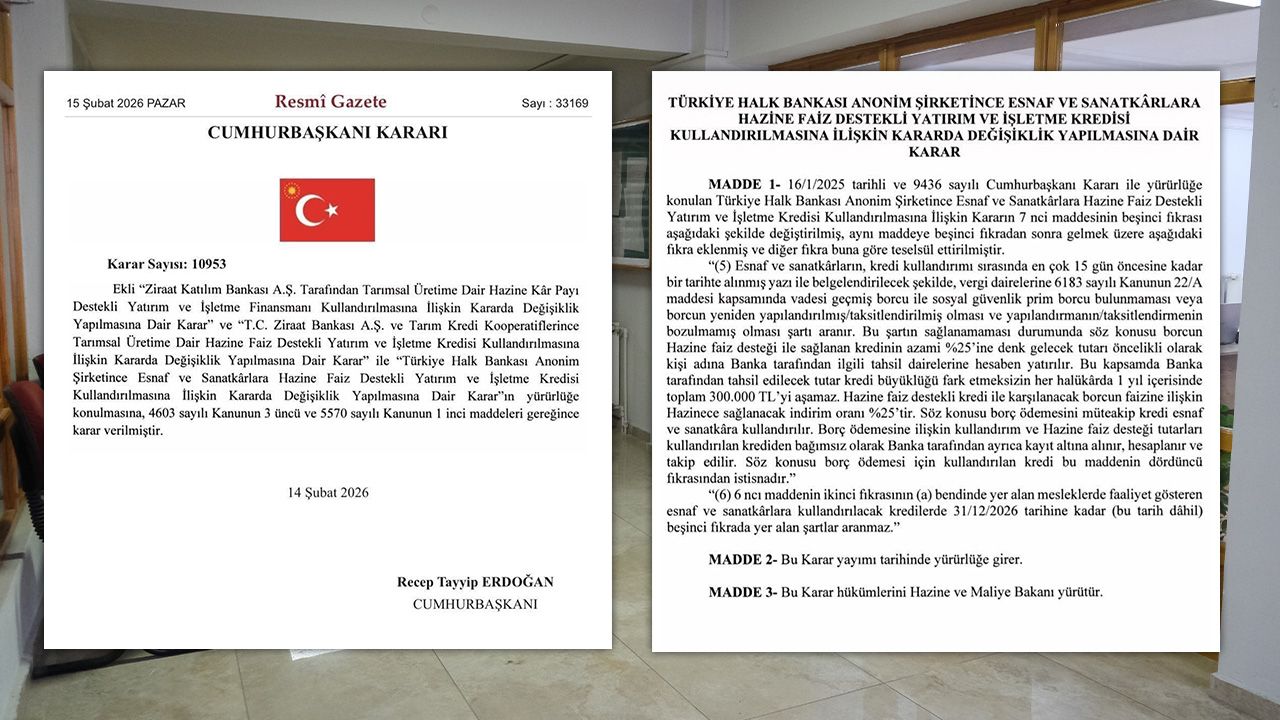 Resmî Gazete’de yayımlanan Cumhurbaşkanı Kararı ile, Türkiye Halk Bankası tarafından kullandırılan esnaf ve sanatkârlara yönelik Hazine faiz destekli yatırım ve işletme kredilerinde önemli değişiklikler yapıldı.