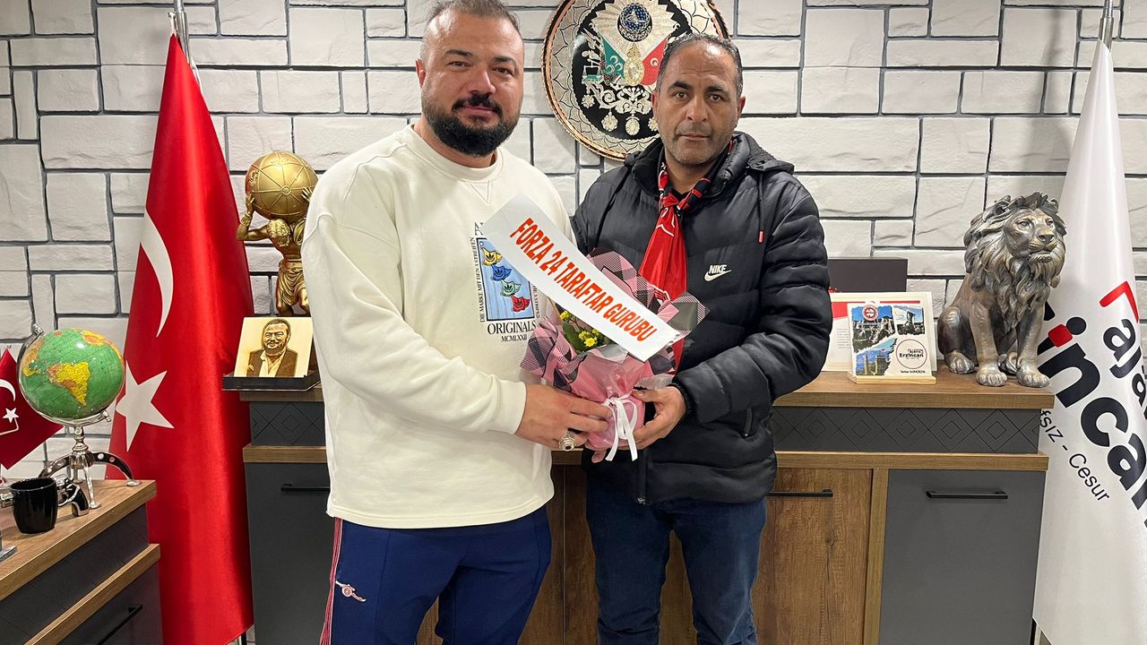 Erzincanspor Forza 24 Taraftar Grubu Lideri Birol Kılıvan Ajans Erzincan Medya Merkezi’ni ziyaret ederek, Yönetim Kurulu Başkanı Serhat Sarıçiçek ve Haber Müdürü Semih Peker ile görüştü. Kılıvan Sarıçiçek’e çiçek takdim ederek, Ajans Erzincan’a, Erzincansporla ilgili haberleri ve yaşanan gelişmeleri anlık olarak aktarmasından dolayı teşekkür etti ve yayın hayatında başarı dileklerinde bulundu.