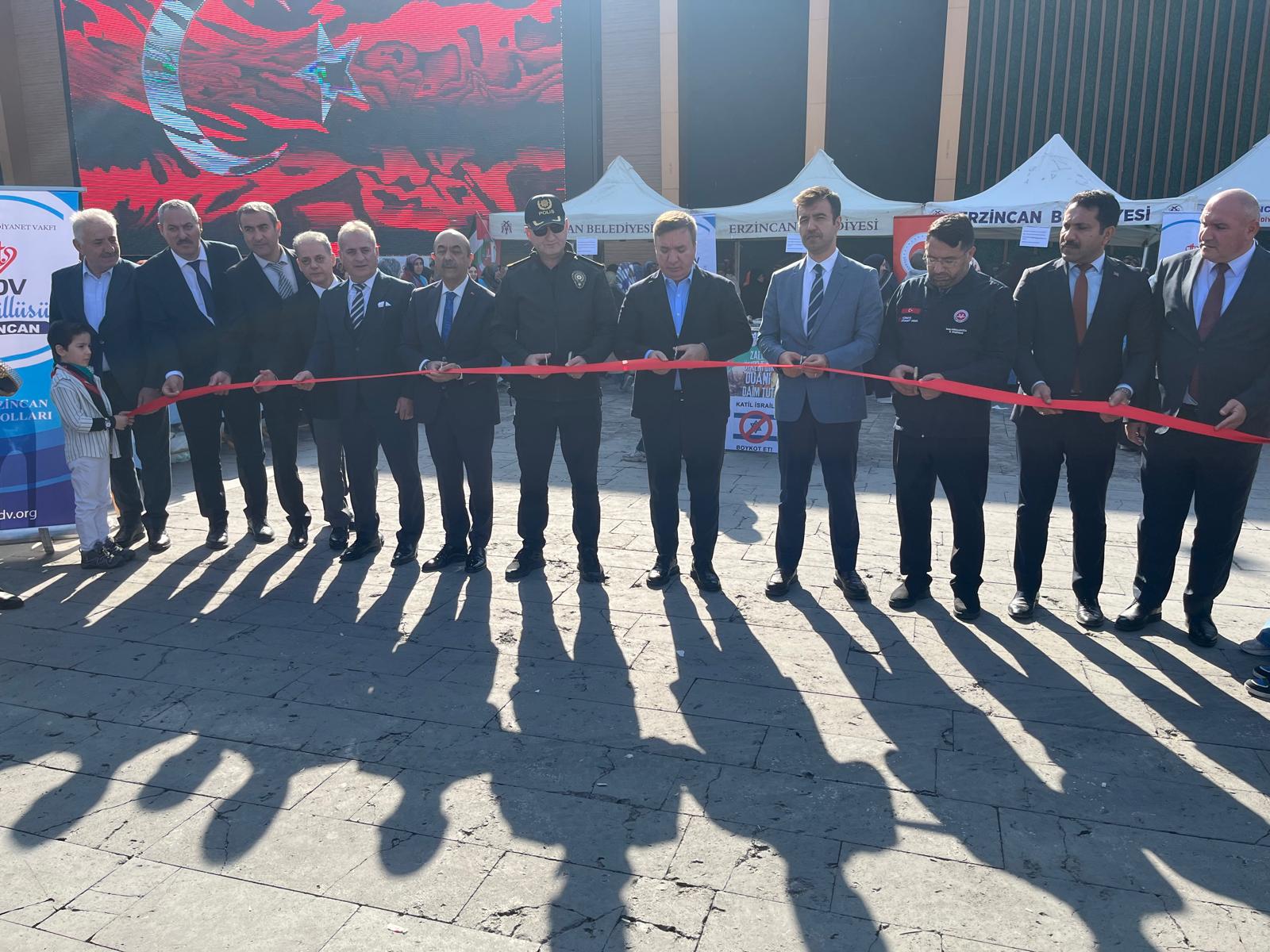Diyanet İşleri Başkanlığı, Erzincan İl Müftülüğü ve Türkiye Diyanet Vakfı tarafından “Gazze Yararına Hayır Çarşısı” açılışı yapıldı. Dörtyol Cumhuriyet Meydanında yapılan açılışa Erzincan Valisi Hamza Aydoğdu, İl Müftüsü İsmail Fakirullahoğlu, kurum müdürleri, ESOB Başkanı Bedir Limon ve çok sayıda vatandaş katıldı.
