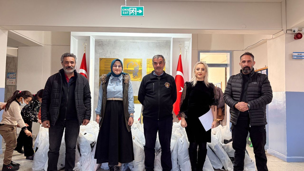 Okuldaki tüm öğrencilere mont ve bot hediye edildi. Yardımlar, büyük bir mutluluk ve coşkuyla dağıtılırken, çocuklar kış şartlarında daha sıcak ve güvende olacak.