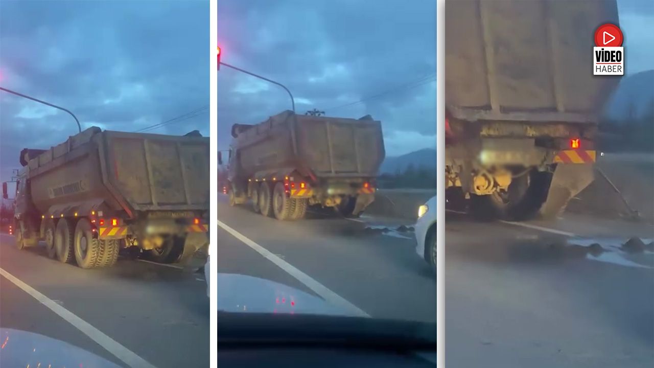 Erzincan batı çıkışında ışıklarda bekleyen bir hafriyat kamyonunun römorkundan akan sulu dere malzemesi arkasındaki araçlara ve asfalta zarar verdi. Kamyonun arkasındaki araçların ön kaputları ve ön camları zarar gördü.