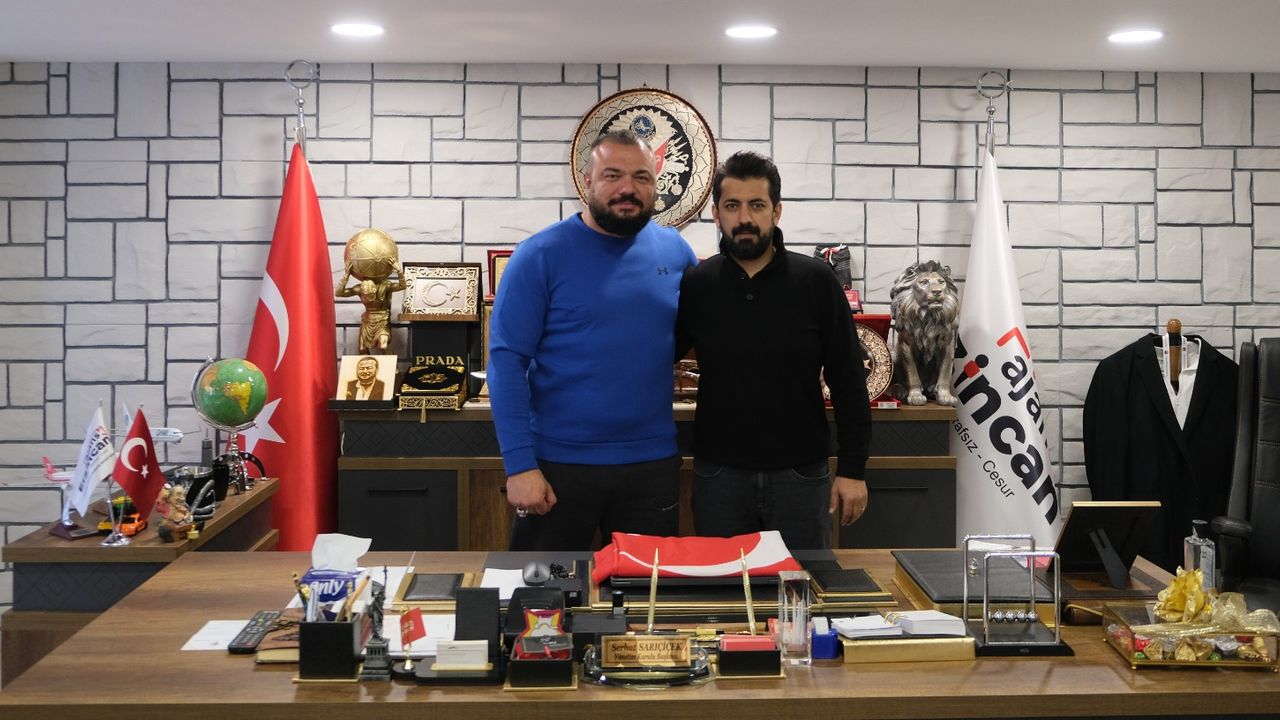 Erzincanlı iş insanı İbrahim Polat, Macaristan’da düzenlenen Veteranlar Dünya Şampiyonasında Dünya 3.sü olan Serhat Sarıçiçek’i ziyaret ederek elde ettiği başarıdan dolayı tebrik etti. Sarıçiçek’in başarısıyla gurur duyduklarını belirten Polat, başarılarının devamını diledi.
