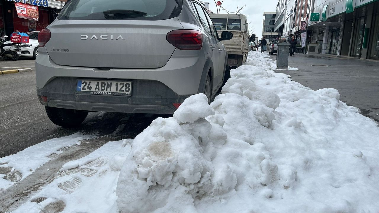 Erzincan’da etkili olan yoğun kar yağışının ardından, ana caddeler üzerindeki kaldırım kenarlarında biriken kar kütleleri buza dönüştü.