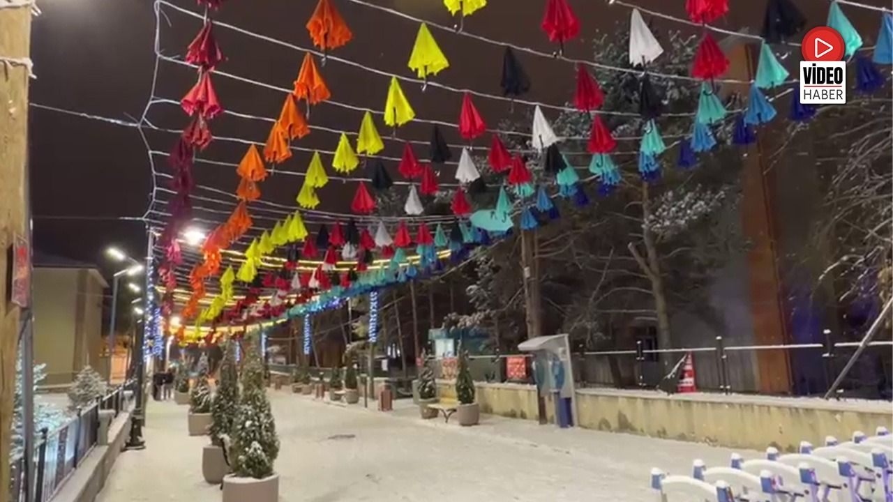 Erzincan ve çevresinde etkili olan yoğun kar yağışı nedeniyle “Şemsiyeli Sokak”taki şemsiyeler kapatıldı. Kar kütlelerinin ağırlığı karşısında zarar görmemesi nedeniyle kapatılan şemsiyeler farklı bir görüntüye büründü.