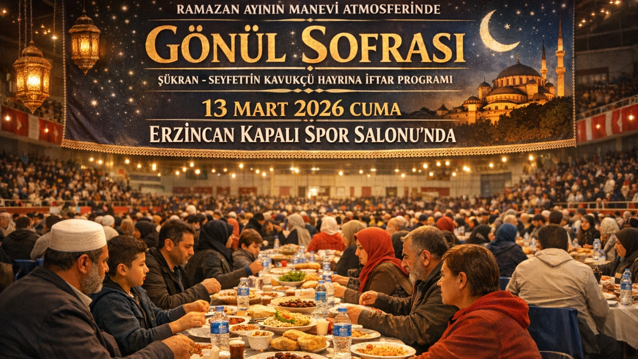 Ramazan ayının manevi atmosferini paylaşmak amacıyla Erzincan’da anlamlı bir iftar programı düzenleniyor. Şükran – Seyfettin Kavukçu hayrına gerçekleştirilecek olan gönül sofrası, 13 Mart 2026 Cuma günü Erzincan Kapalı Spor Salonu’nda kurulacak.