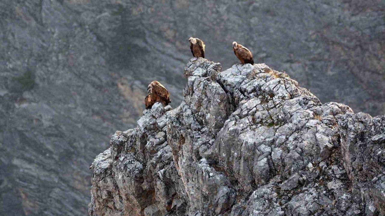 Erzincan’ın Kemaliye ilçesinde, yaban hayatı fotoğrafçıları Osman Topaloğlu ve Arda Topaloğlu tarafından göçmen akbabalar görüntülendi. Çekilen fotoğraflarda kuşların çip takılarak takip edildiği de fark edildi.