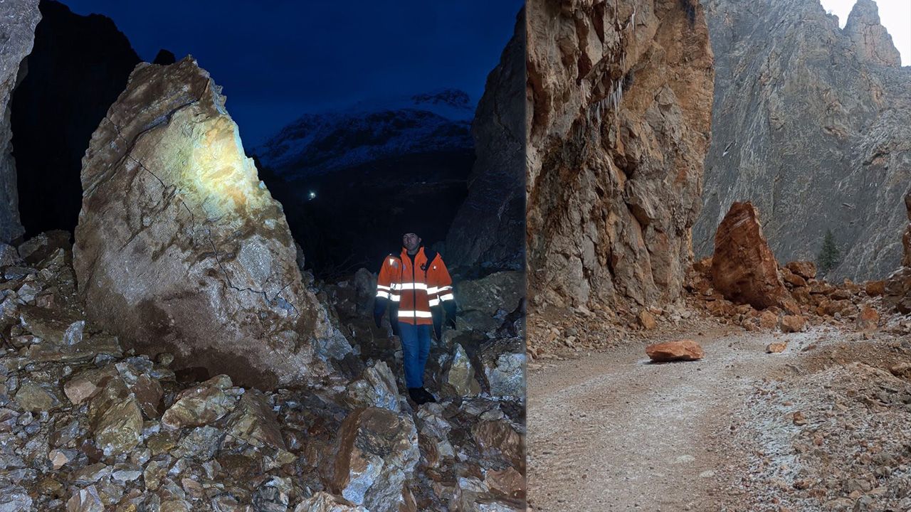 Kemaliye Kaymakamlığı'ndan yapılan açıklamaya göre, 16 Ocak 2026 Perşembe günü saat 18.50 sıralarında, yamaçtan kopan kaya ve taş parçalarının yol üzerine düşmesi sonucu olay yaşandı.