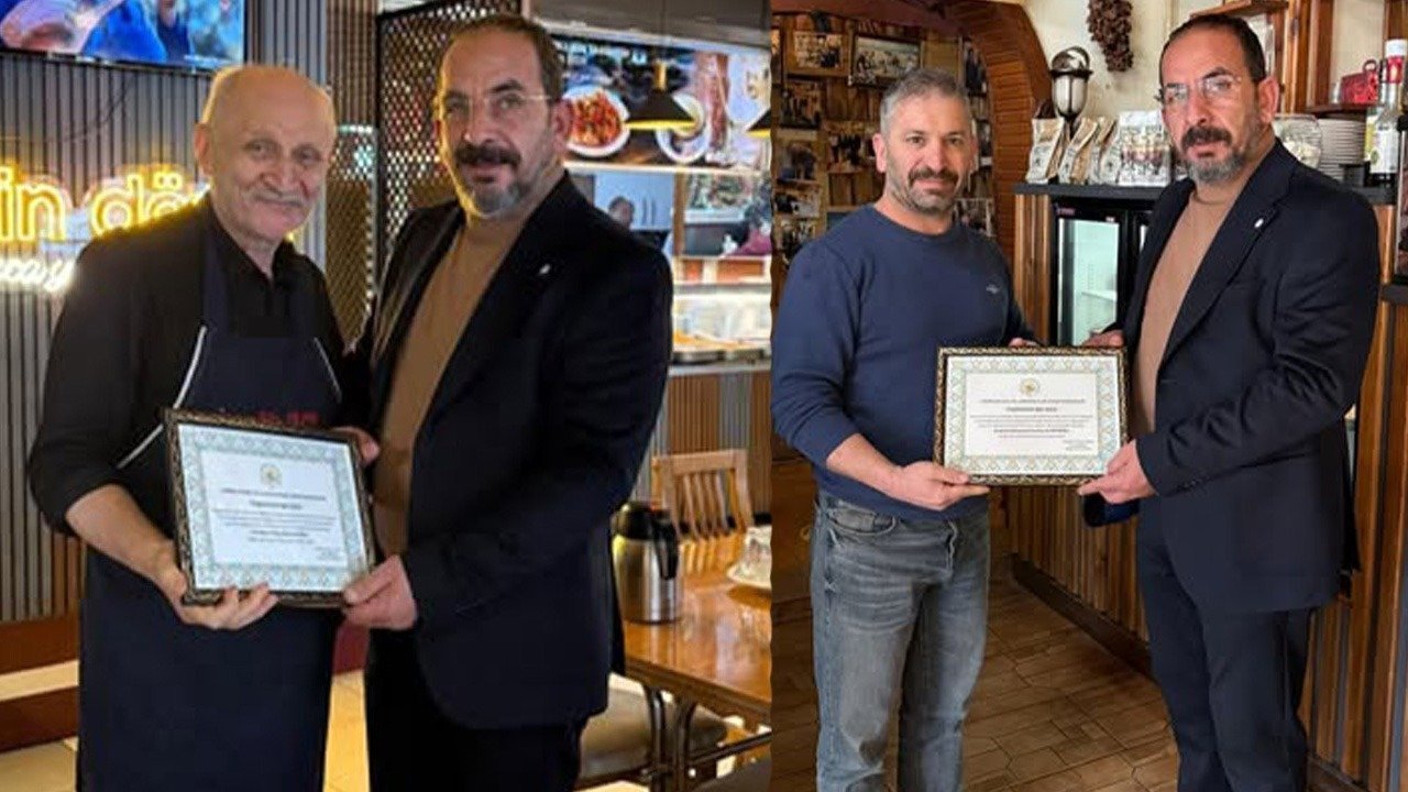 Erzincan Aşçı ve Lokantacılar Odası Başkanı Erkan Telçeken, Ramazan ayında faaliyetleri ve iftar yemeklerine verdikleri desteklerden dolayı il genelindeki lokantacı esnafına Teşekkür Belgesi verdi.