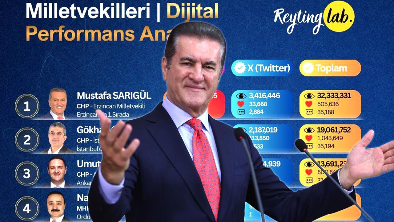 ALF Araştırma ve Reyting Lab iş birliğiyle gerçekleştirilen Şubat ayı "Milletvekilleri Dijital Performans Analizi" sonuçları açıklandı. Milletvekillerinin sosyal medya mecralarındaki görüntülenme ve etkileşim oranlarının incelendiği araştırmada, CHP Erzincan Milletvekili Mustafa Sarıgül, rakiplerini geride bırakarak dijital performans listesinin zirvesine yerleşti.