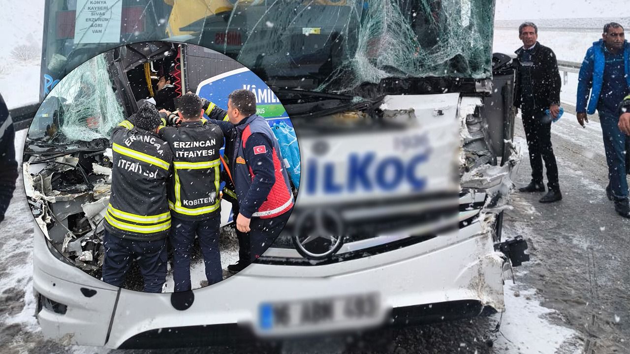 Konya’dan hareket ederek Van’a gitmekte olan şehirlerarası yolcu otobüsü Erzincan Sivas karayolu Sakaltutan Geçidi mevkisinde, sabah saatlerinde önünde seyir halinde olan TIR’a arkadan çarptı.