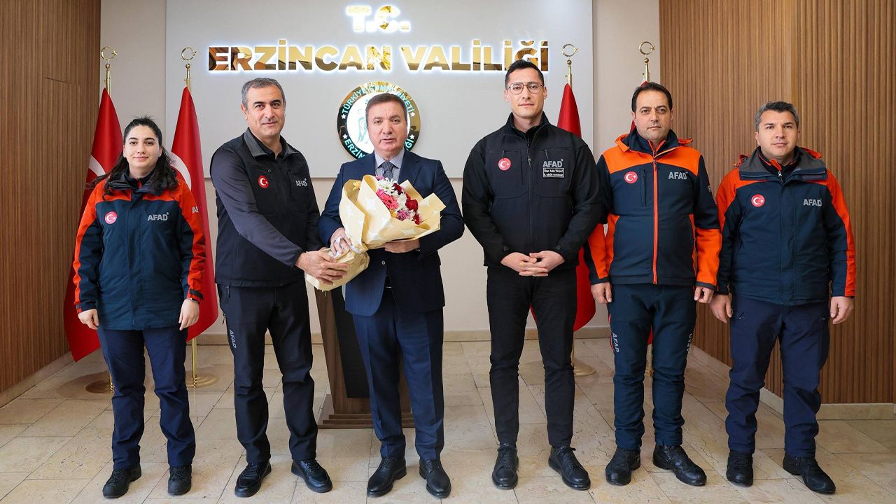 Erzincan Valisi Hamza Aydoğdu, Afet ve Acil Durum Yönetimi Başkanlığı’nın (AFAD) 16. kuruluş yıl dönümü dolayısıyla Erzincan İl Afet ve Acil Durum Müdürü Enver Özcan ve beraberindeki AFAD personelini makamında kabul etti.